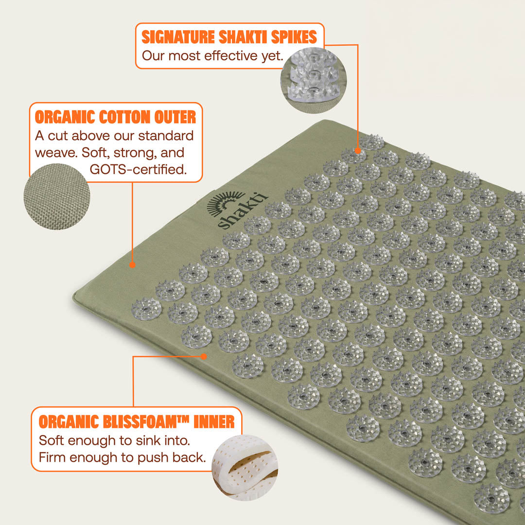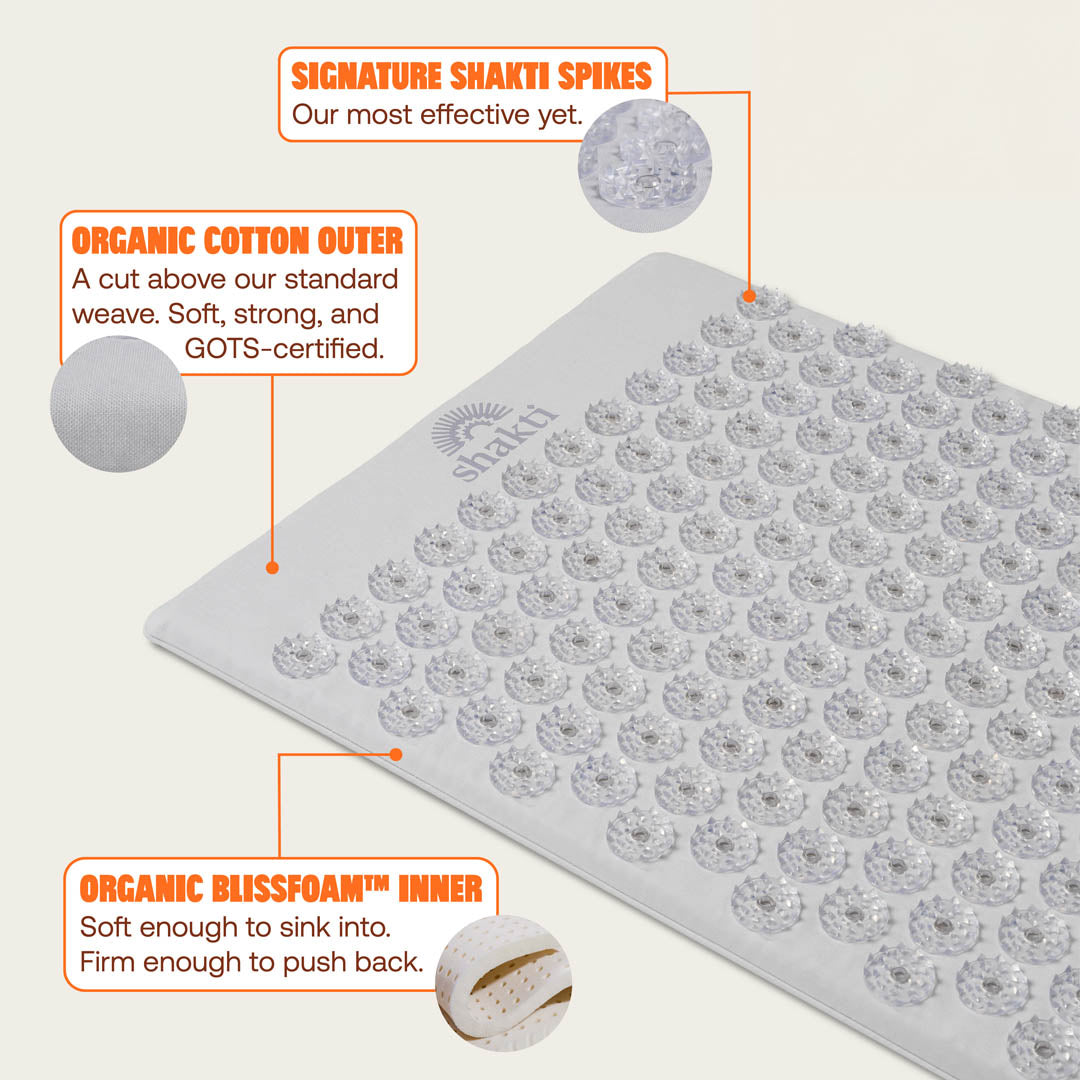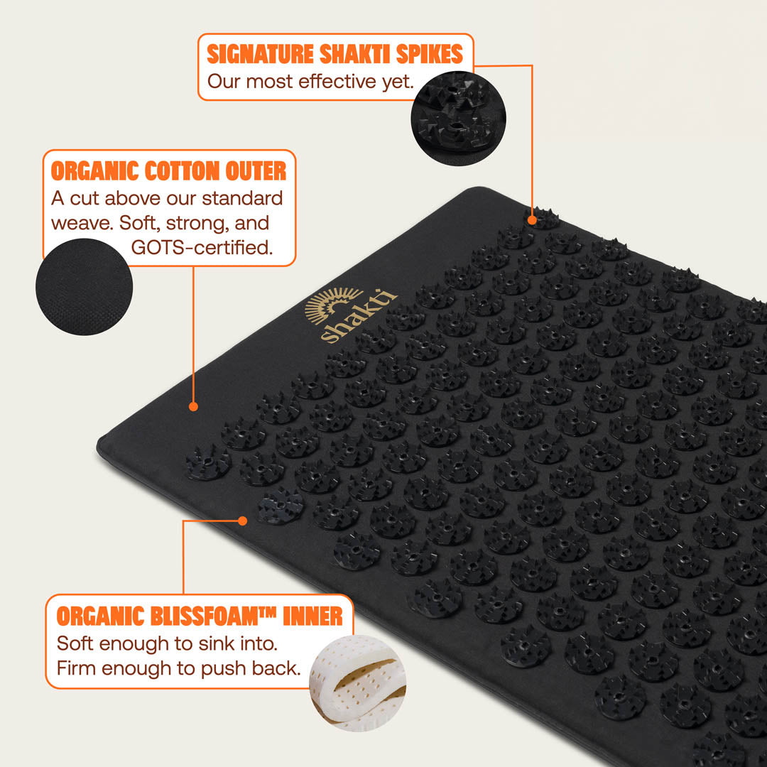 De eerste Shakti Matten en Kussens zetten ons op de kaart met meer dan 30K 5-sterren reviews. Ze bewezen dat op spikes liggen om tot rust te komen meer ontspannend kan zijn dan een massage. Deze nieuwste editie verbetert alles wat jij en onze community zo geweldig vinden aan de eeuwenoude wellnesspraktijk die acupressuur is.